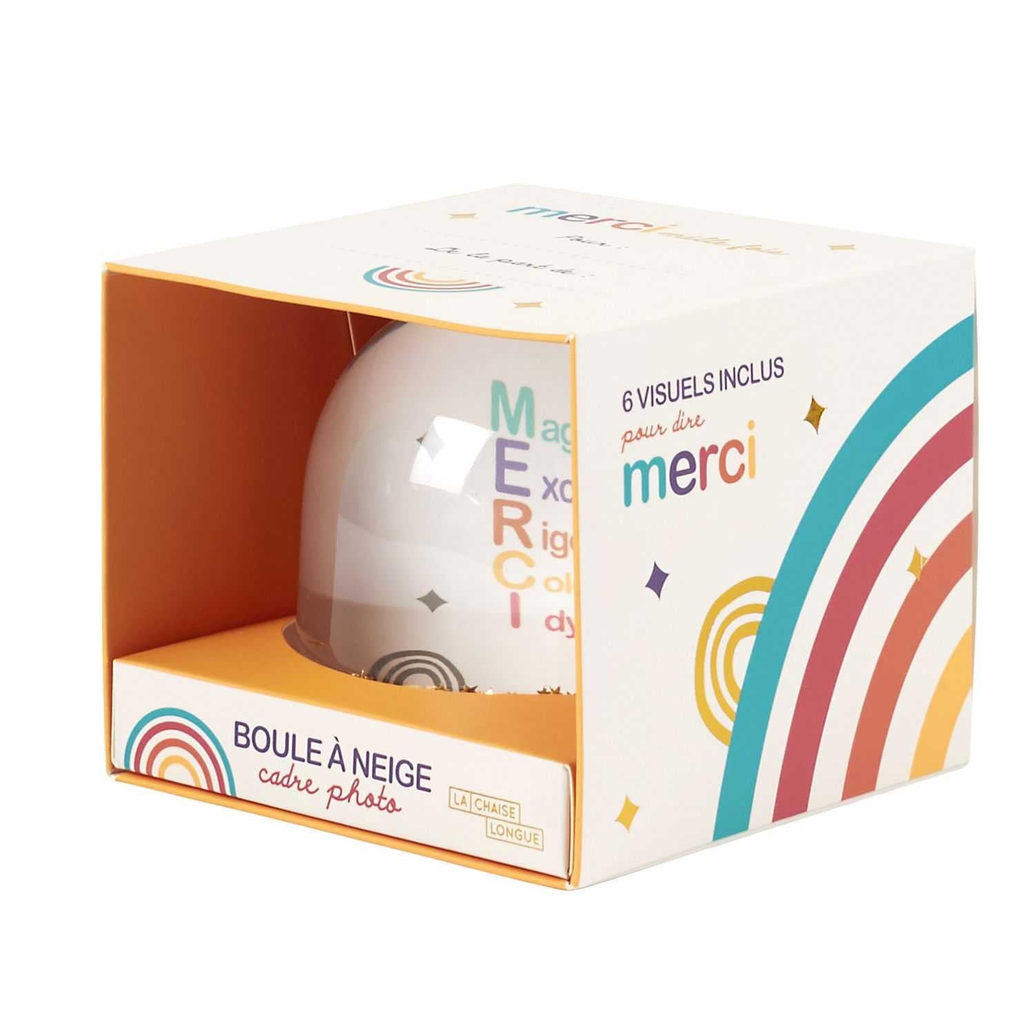 Offrir une Boule à neige cadre photo “Merci”, c’est offrir un petit concentré d’affection et de reconnaissance. C’est dire « tu comptes pour moi » avec douceur et sincérité. Dans un monde où tout va vite, elle invite à ralentir et à savourer la beauté des souvenirs partagés. Un objet qui, derrière sa simplicité apparente, renferme toute la magie des mots sincères et la chaleur des moments précieux. Un « merci » qui ne fond jamais.