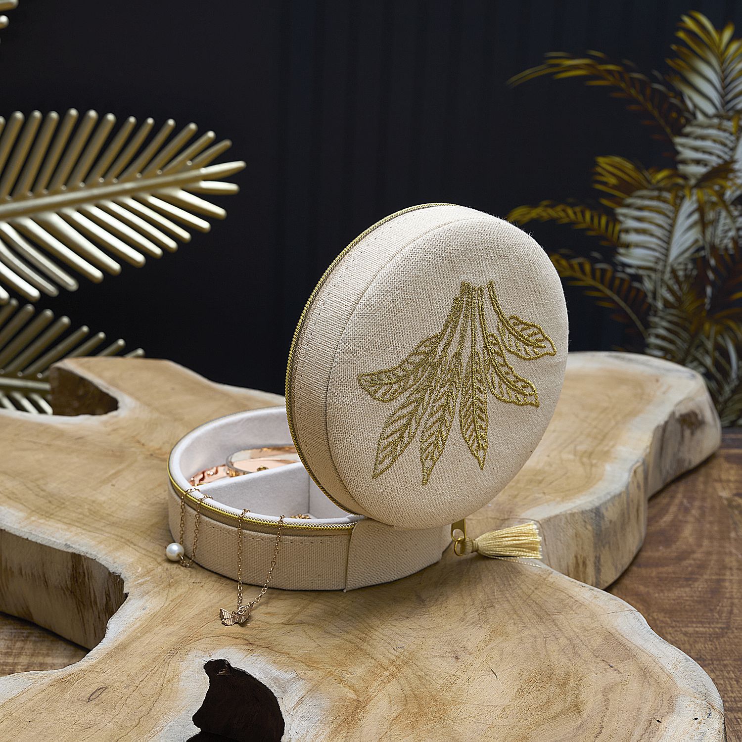 Le Coffret à Bijoux Golden Paradise est une ode à l'élégance et à la sophistication. Avec son design doré et tropical, ce coffret n'est pas seulement un lieu de rangement pour vos précieux bijoux; il est une pièce de décoration en soi. Parfait pour conserver vos trésors les plus chers dans un écrin qui reflète leur valeur.