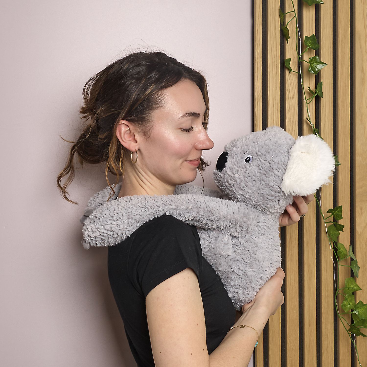 Ce qui rend cette peluche si unique, c’est son poids. Grâce à son lestage, elle reproduit la sensation enveloppante d’une couverture pondérée. Cette douce pression a des effets étonnants : elle favorise la détente, réduit le stress et apaise instantanément. En la serrant contre soi, on ressent une sécurité réconfortante, comme si le monde ralentissait un peu. Les enfants l’adoptent pour s’endormir plus facilement, tandis que les adultes y trouvent une source de bien-être lors des moments de fatigue ou de tension. Son toucher velouté et sa présence rassurante font de ce koala un compagnon parfait pour les soirées cocooning, les siestes improvisées ou tout simplement pour se faire un câlin quand on en a besoin.
