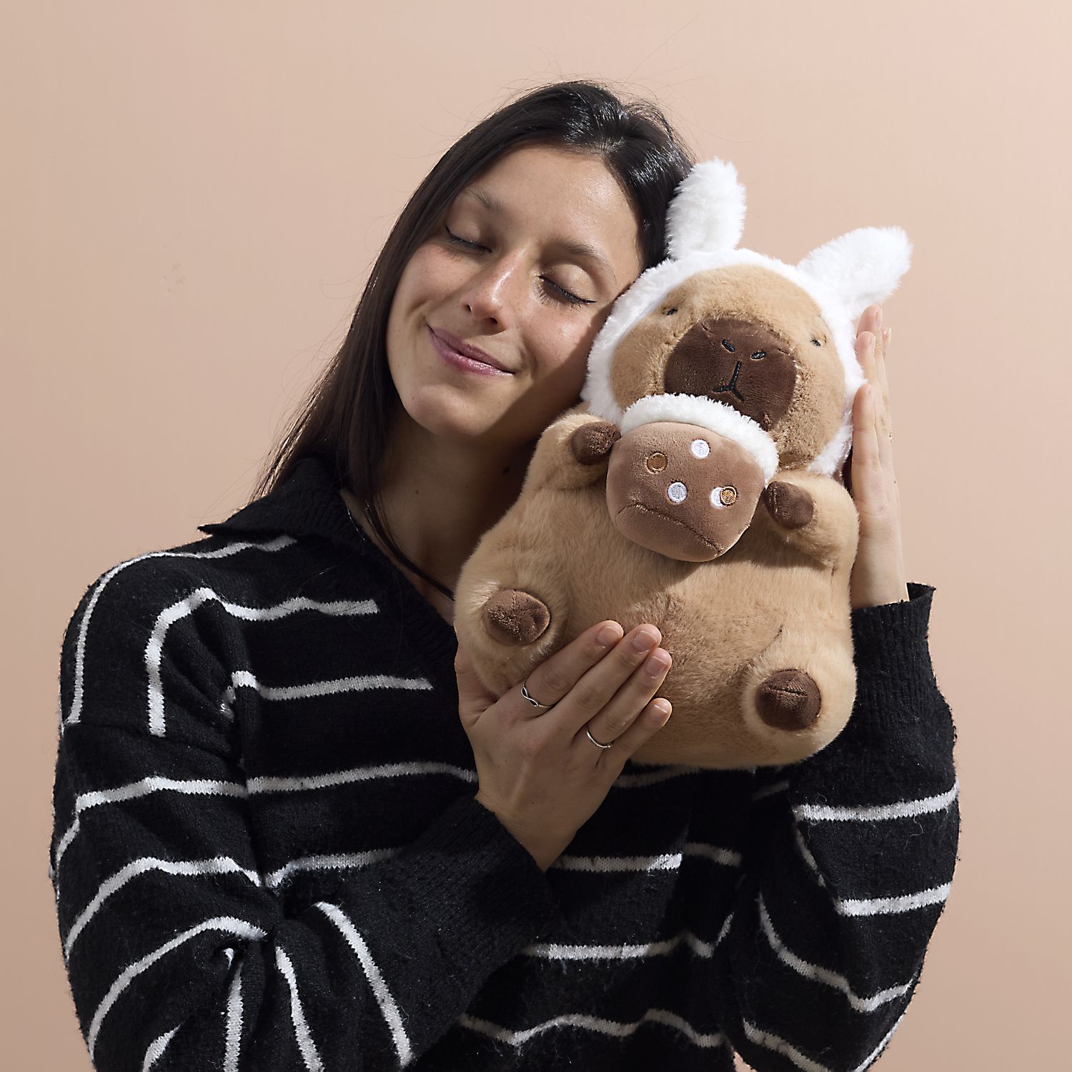 Voici Cookie le Capy, le rongeur le plus cool de l’univers en version peluche ! D’un simple regard, il apaise les cœurs, déclenche des soupirs attendris et donne une envie irrépressible de câlin. Avec sa frimousse boudeuse, ses petites oreilles toutes douces et son look de capybara délicatement sucré, il coche toutes les cases de la peluche parfaite : originale, ultra mignonne, et follement réconfortante. Cookie, c’est un peu ce pote toujours zen, celui qui ne juge jamais, même quand on pleure devant une pub pour du fromage.