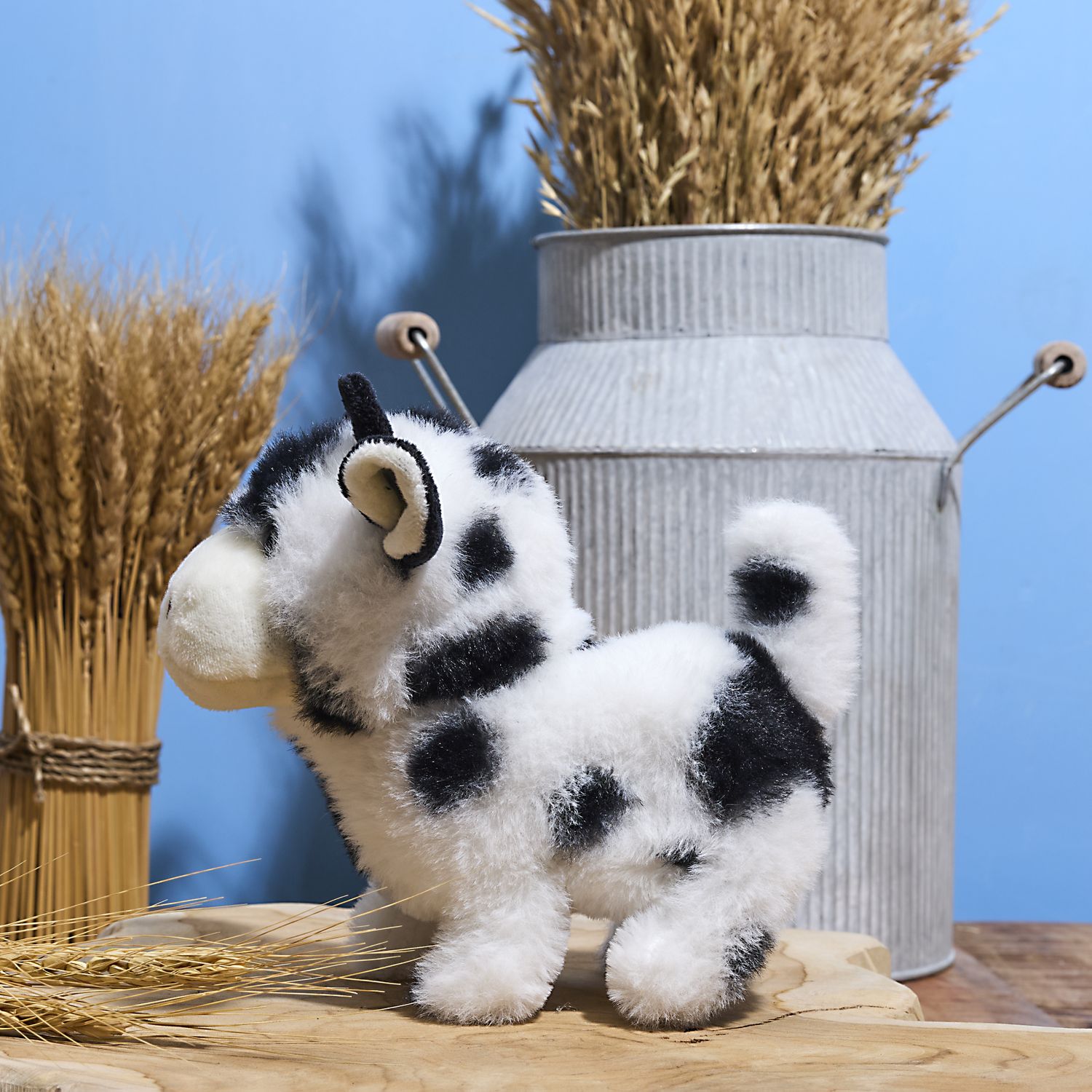 La première chose qui frappe avec Marguerite, c’est son apparence soignée et adorable. Ses finitions travaillées rappellent avec tendresse l’allure d’une vache de prairie, tout en conservant l’esprit ludique et mignon d’une peluche. Ses petites pattes, son museau blanc et ses oreilles toutes douces la rendent irrésistible. Sa taille est idéale : assez grande pour être remarquée et assez compacte pour être emportée partout. Posée sur une étagère, elle fait office de décoration champêtre pleine de charme ; dans les bras d’un enfant, elle devient un compagnon de jeu inséparable.