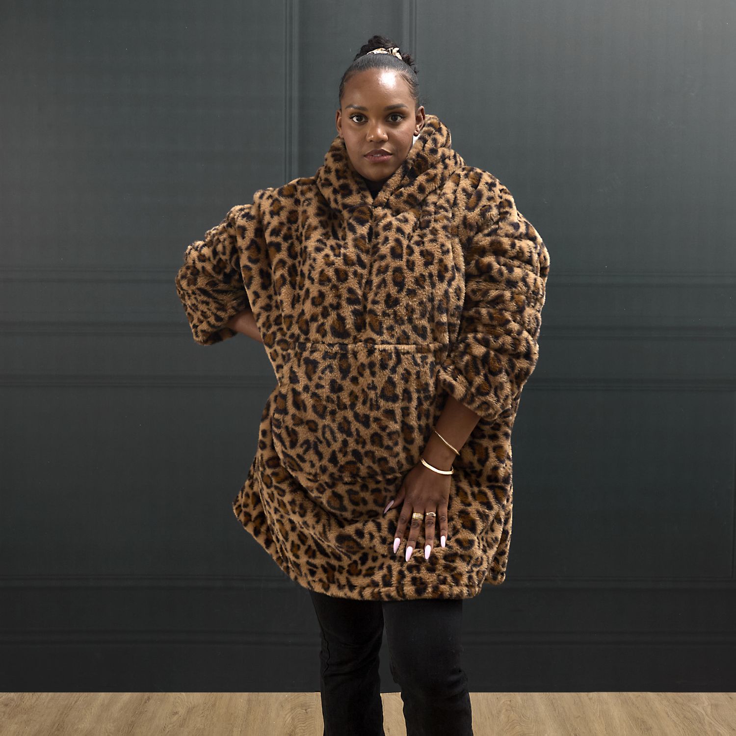 Ce qui distingue immédiatement le Sweat Plaid Léopard Kimba, c’est son look. Avec son imprimé léopard audacieux, il transforme une simple séance Netflix en véritable défilé sauvage sur le canapé. Plus qu’un vêtement cocooning, c’est une pièce qui affirme votre personnalité, tout en restant incroyablement tendre au toucher. Son côté oversized enveloppe le corps comme un cocon, tandis que la capuche et les grandes poches ajoutent une touche encore plus pratique. Bref, c’est le sweat plaid qui ne passe pas inaperçu, même quand vous ne bougez pas de votre salon.